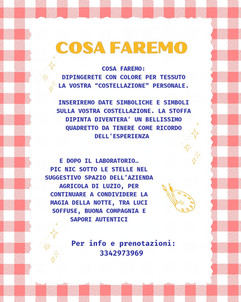 laboratorio creativo di pittura su stoffa per coppie. Dipingi il vostro cielo con segno zodiacale e date simboliche nella magica notte di San Lorenzo, A seguire picnic sotto le stelle